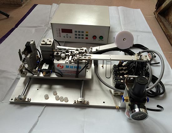 大量現(xiàn)貨出售變壓器繞線自動(dòng)穿鐵氟龍?zhí)坠軝C(jī),人工在引導(dǎo)拉動(dòng)銅線掛腳時(shí)銅線線頭上就已經(jīng)穿有套管,只需用手在拉線的同時(shí)定位(此動(dòng)作耗時(shí)不到0.5S)一下套管就可以直接使用了。功能非常強(qiáng)大:自動(dòng)送套管,自動(dòng)切斷,自動(dòng)穿套管。單色單根、單色兩根、雙色兩根、雙色三根、雙色四根,傲視同行的雙路送管設(shè)計(jì),黑白套管同時(shí)穿。對(duì)操作人員的資質(zhì)要求降低了,新員工也可很快成為熟練工。CNC繞線機(jī)上加裝穿套管機(jī)構(gòu)分析報(bào)告 二.兩種加工方式對(duì)比,更換套管與線徑只需調(diào)節(jié)套管夾具的大小,然后選取相對(duì)應(yīng)大小的線針即可完成,銅線可調(diào),適用于絕大多數(shù)穿套管變壓器生產(chǎn)。一線工人都可以自行操作.雙色穿套管機(jī)全中文微電腦控制顯示,套管長(zhǎng)度可任意設(shè)定,始末端均可選擇。智能控制端,人性化菜單設(shè)計(jì)操作簡(jiǎn)單,外觀和常用繞線機(jī)協(xié)調(diào)一致美觀大方,引線自動(dòng)送出,自動(dòng)完成穿套管作業(yè)。套管大小長(zhǎng)度可調(diào)整,尺寸精確。